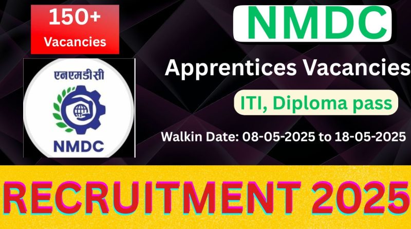 National Mineral Development Corporation (NMDC) Recruitment 2025 for 179 posts of Apprentice. Candidates with B.Tech/B.E, Diploma, ITI Can attend the walkin. The Walk-in starts from 08-05-2025, and ends on 18-05-2025. For detailed information please visit NMDC official website, nmdc.co.in.