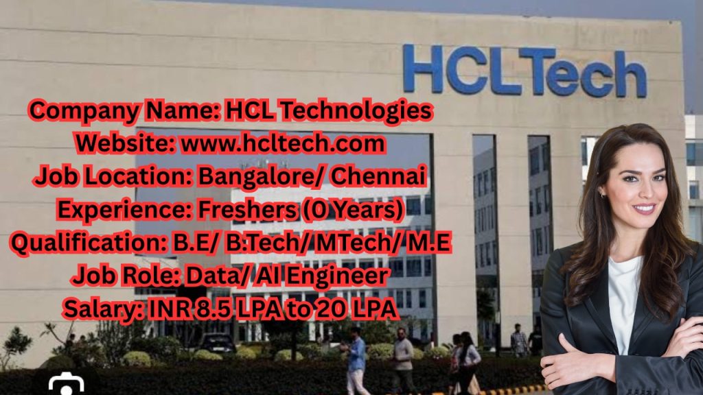 HCL Job Openings For Freshers | Data/ AI Engineer Jobs | Bangalore/ Chennai|HCL Job