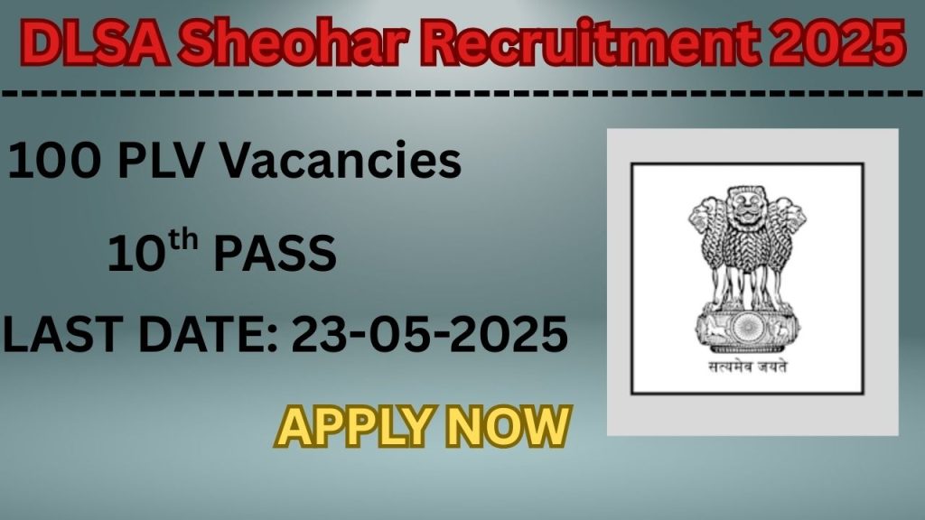 The District Legal Services Authority (DLSA Sheohar) has released an official notification for the recruitment of 100 Para Legal Volunteer posts. Interested and eligible candidates can apply Offline through the official DLSA Sheohar website. The last date to submit the application form is 23-05-2025.