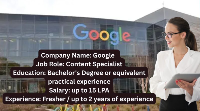 Google Recruitment 2025: Explore Google latest Content Specialist job opening in Hyderabad for Freshers! Review the recruitment process for Freshers 2025 below. Stay ahead with timely updates on Freshers Recruitment and Content Specialist jobs by joining our Telegram Group